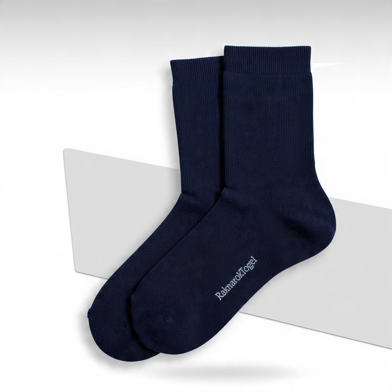 Kaos kaki ini merupakan produk dari RaknarokTogel yang dirancang sebagai kaos kaki harian dengan model crew socks yang menutupi area pergelangan hingga bagian bawah betis. Produk hadir dengan warna navy yang terlihat simpel namun tetap stylish. Material yang digunakan adalah cotton blend premium yang memiliki tekstur lembut, ringan, serta mampu memberikan sirkulasi udara yang baik. Kaos kaki ini tersedia dalam ukuran free size yang dapat menyesuaikan ukuran kaki dewasa.